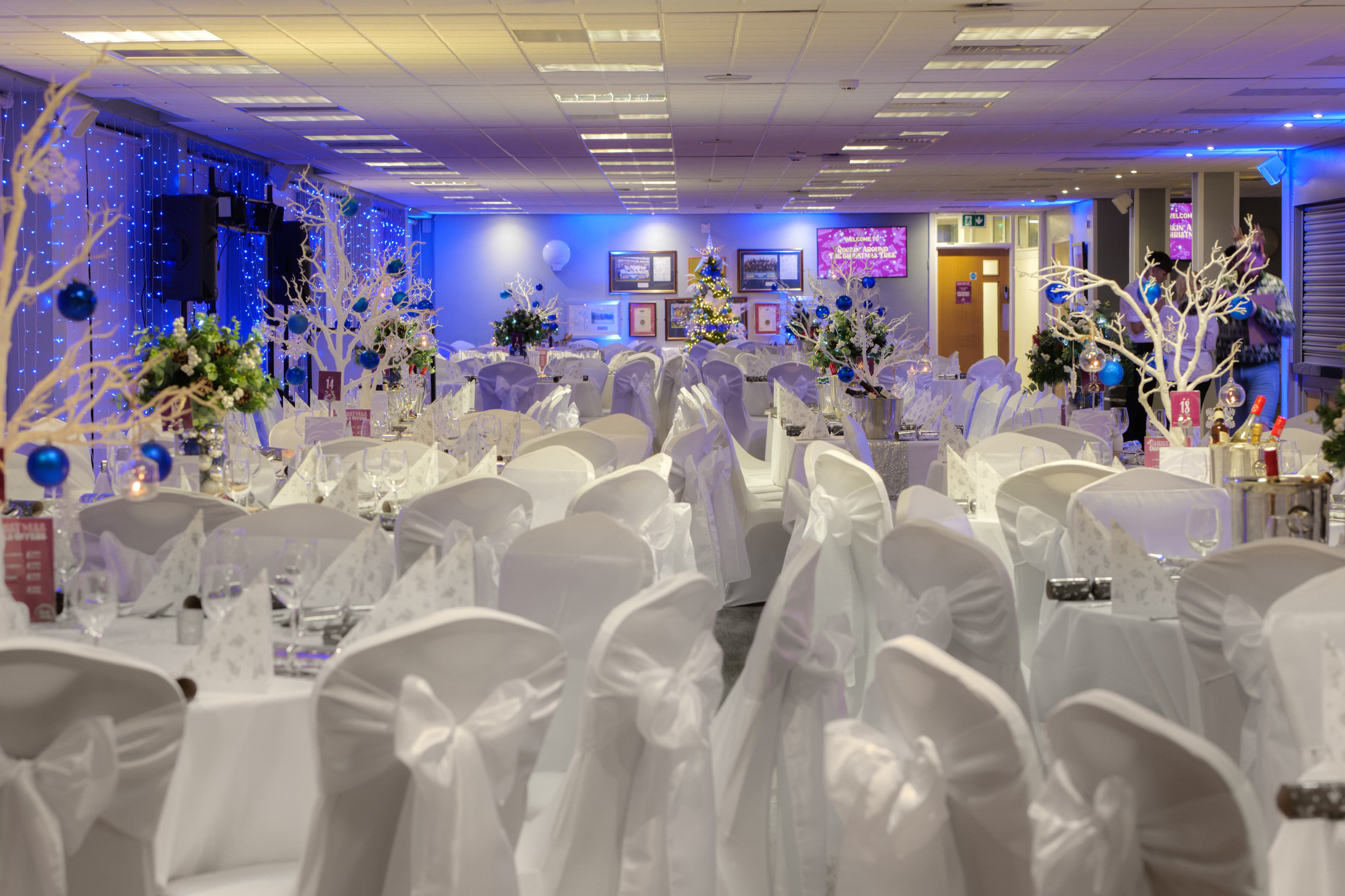 • Personalised branding, large light-up lettering, and custom table plans